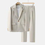 Dieses zweiteilige Ensemble für Männer vereint zeitgenössischen Komfort mit einem Hauch von Schneiderkunst. Das Sakko und die geraden Hosen bieten ein poliertes Profil ohne Steifheit, gefertigt mit hochwertiger Handwerkskunst und einem raffinierten Finish.