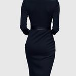 Zeitlose Eleganz kombiniert mit einer figurbetonten Midi-Kleid Silhouette