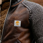 während der Körper aus gealtertem Leder und das Innens lining aus Sherpa-Wolle optimalen Schutz vor Kälte bieten.