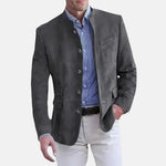 Diese Jacke präsentiert ein luxuriöses Finish aus hochwertigem Wildleder, das wunderbar altert und mit jedem Tragen an Charakter gewinnt. Der elegante Stehkragen verleiht deinem Look eine moderne und stilvolle Note, während die raffinierten Details eine wirklich erstklassige Silhouette schaffen.